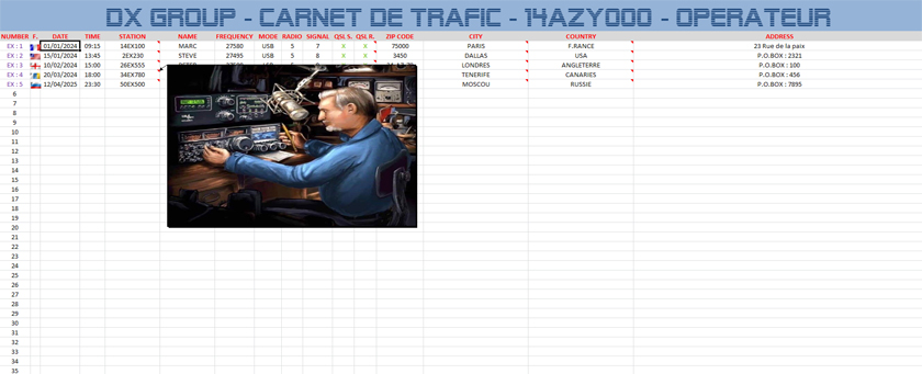 *** Si vous possédez la photo de l'opérateur ou de sa station, insérez celle-ci dans la cellule "Station" avec le même procédé que pour les drapeaux. ***