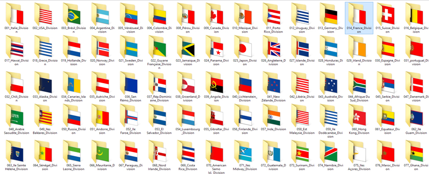 *** Dans votre Dossier de classement de vos Cartes (E)QSL, vous trouverez un fichier pour chaque Division avec son numéro + un drapeau correspondant à celle-ci. ***